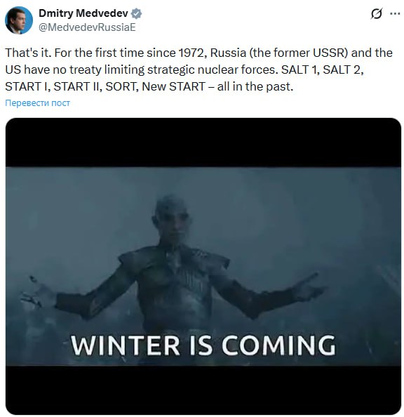 Напомним, сегодня истек срок действия последнего договора по ядерной безопасности, заключавшегося еще между СССР и США и с тех пор регулярно продлевавшегося.