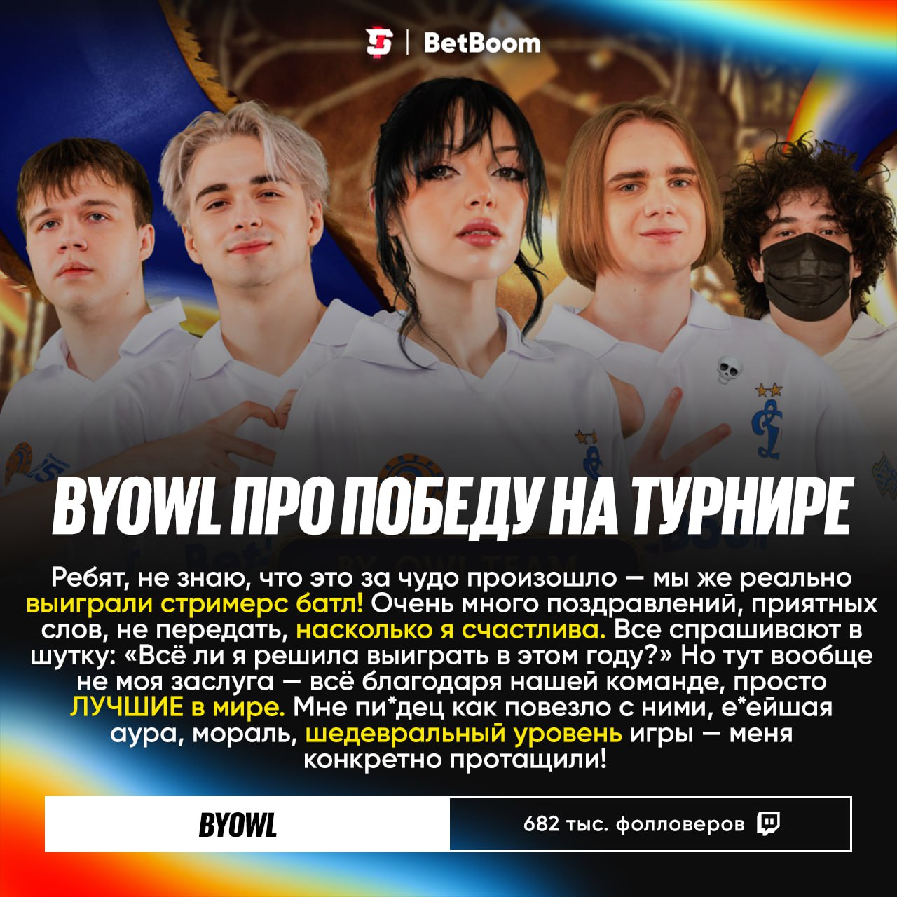 #ByOwl поделилась впечатлениями от победы на турнире «BetBoom Streamers Battle x Динамо 12» 💭