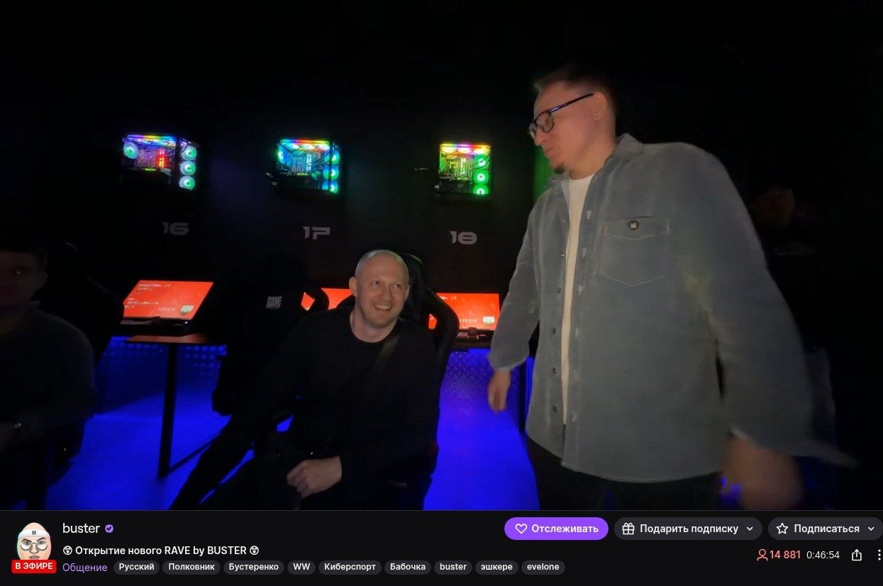#Buster проводит стрим с открытия компьютерного клуба «RAVE by Buster» в Москве от #VooDooSh и #Ramzes 🤝