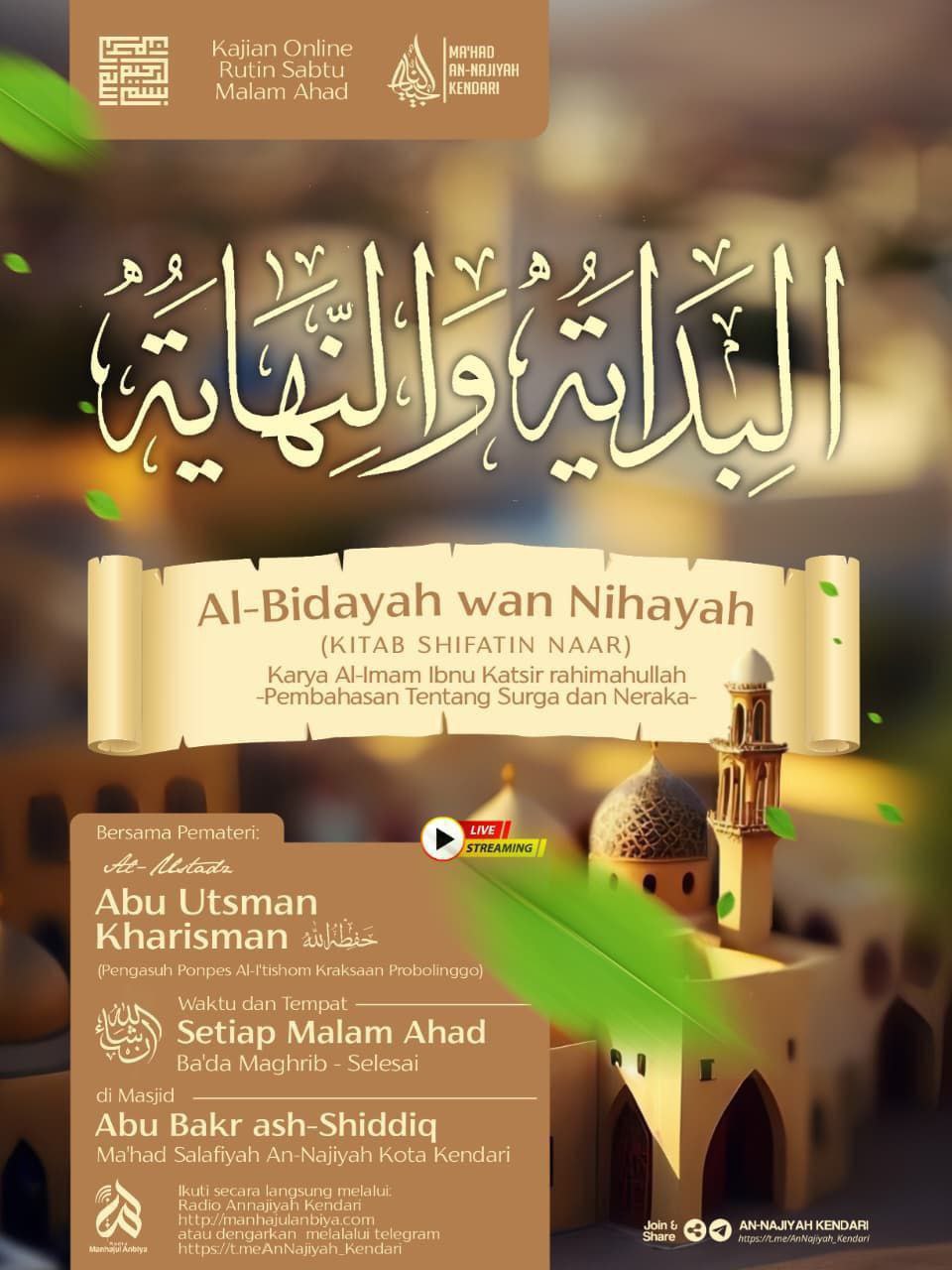 ✍️Menghubungkan Ummat kepada pewaris para nabi Radio Serambi Ulama Ambon di aplikasi radio Manhajul Anbiya https://t.me/serambiulama?livestream=6ecb7eeb63c329975
