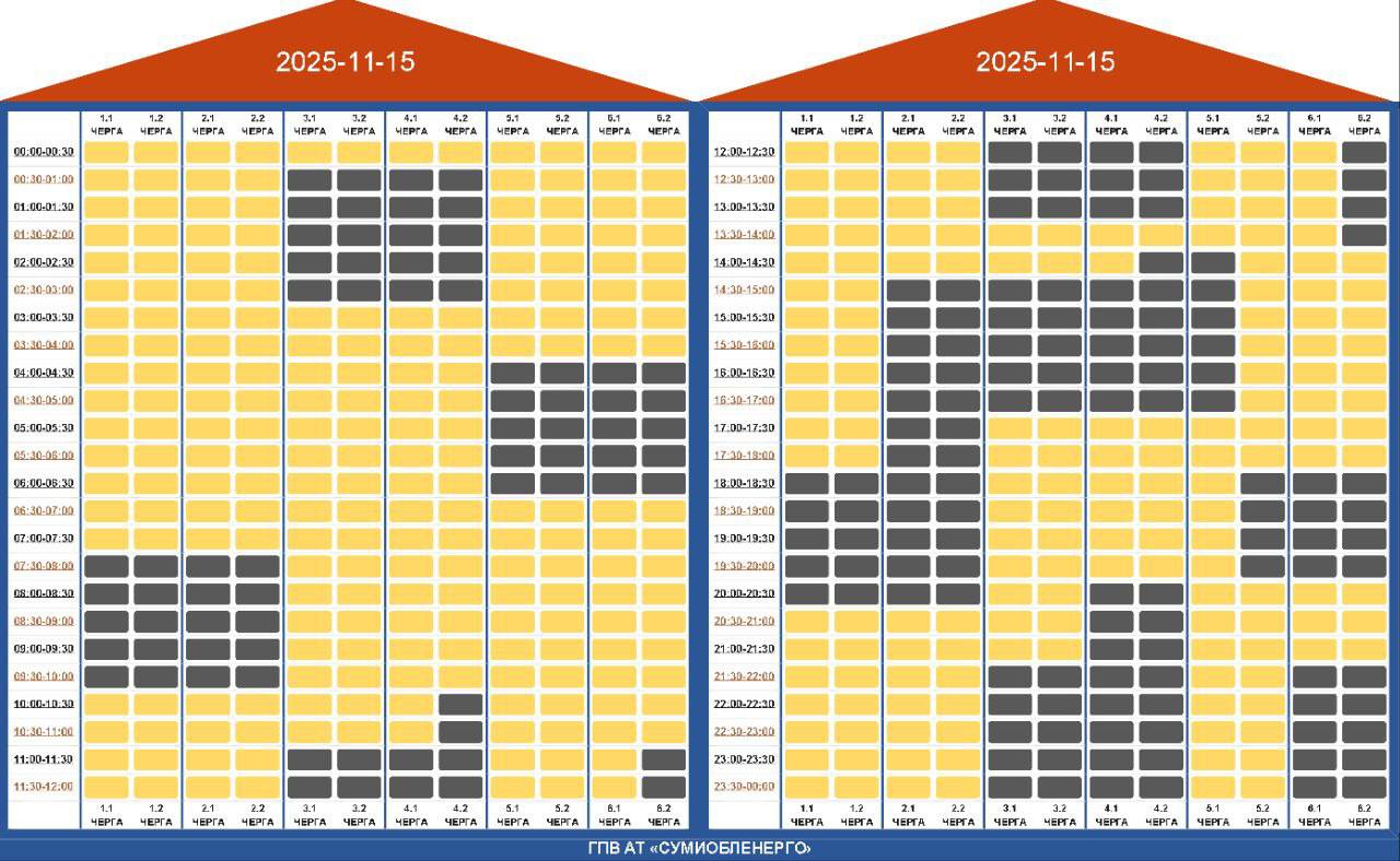 💡Завтра, 15 листопада, діятимуть графіки погодинних відключень. Відповідно до команди НЕК "Укренерго":