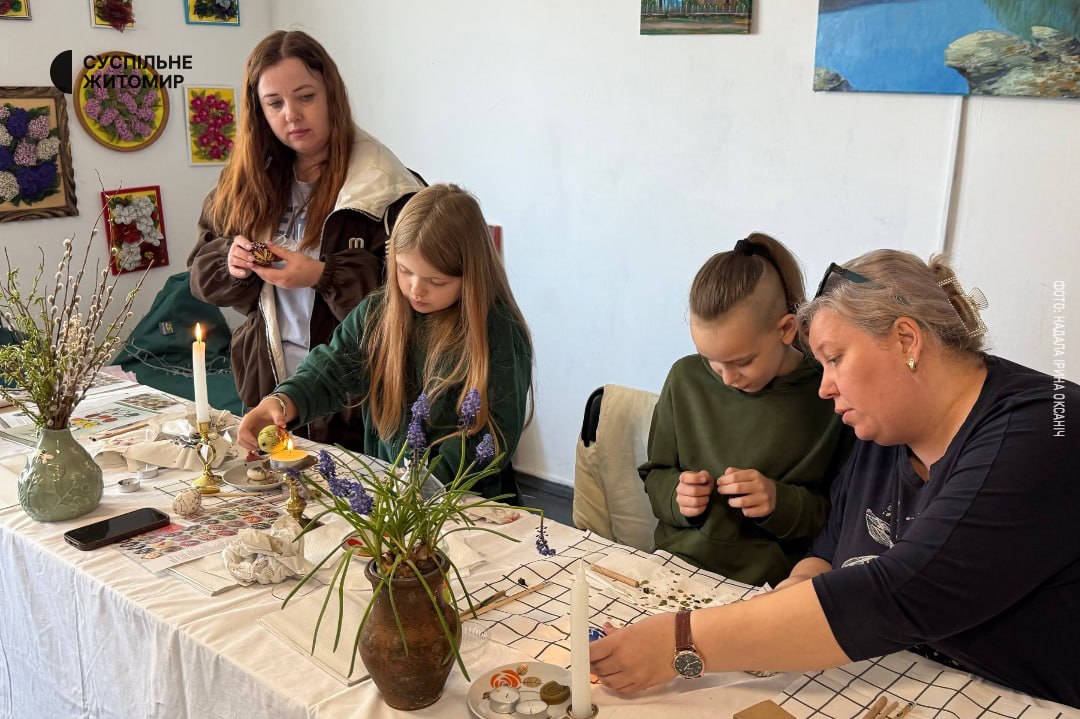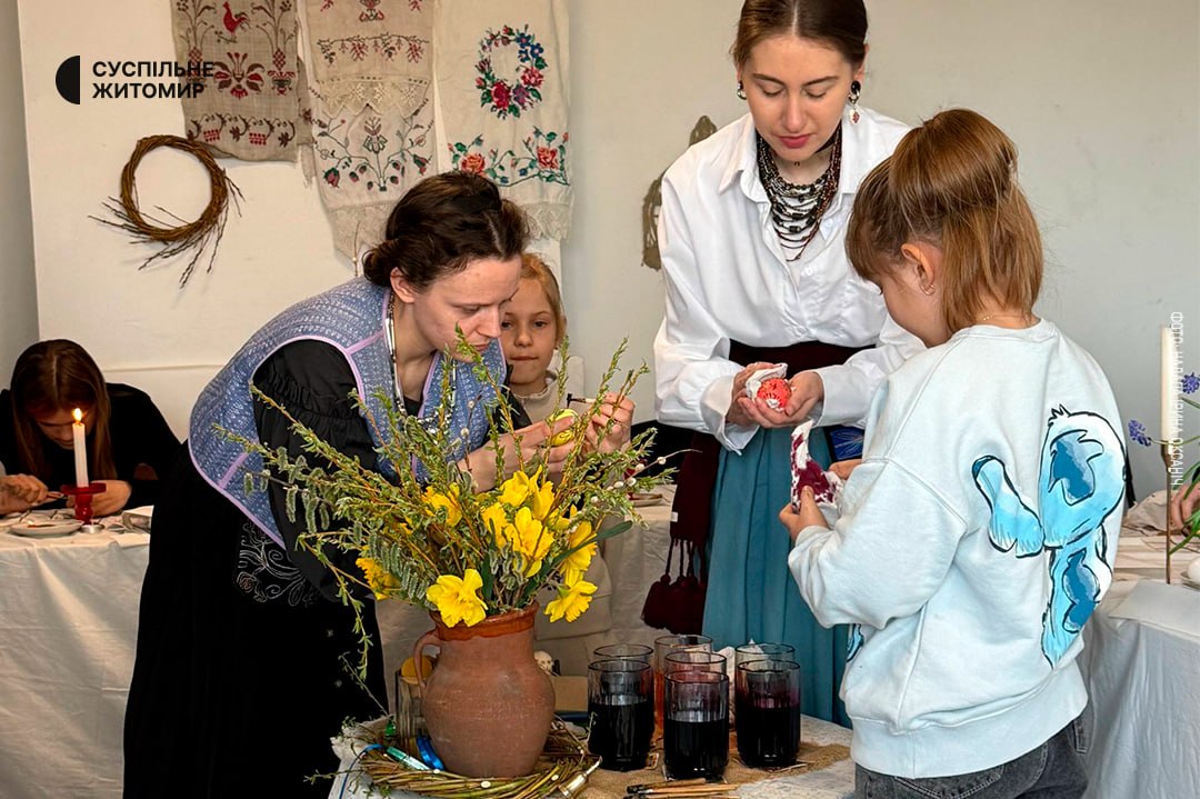 У Малині на Житомирщині провели майстер-клас із писанкарства. Майстрині поєднували навчання з розпису яєць із розповіддю про народні традиції. Долучитися до занять можна було за донат на автомобіль для військових.
