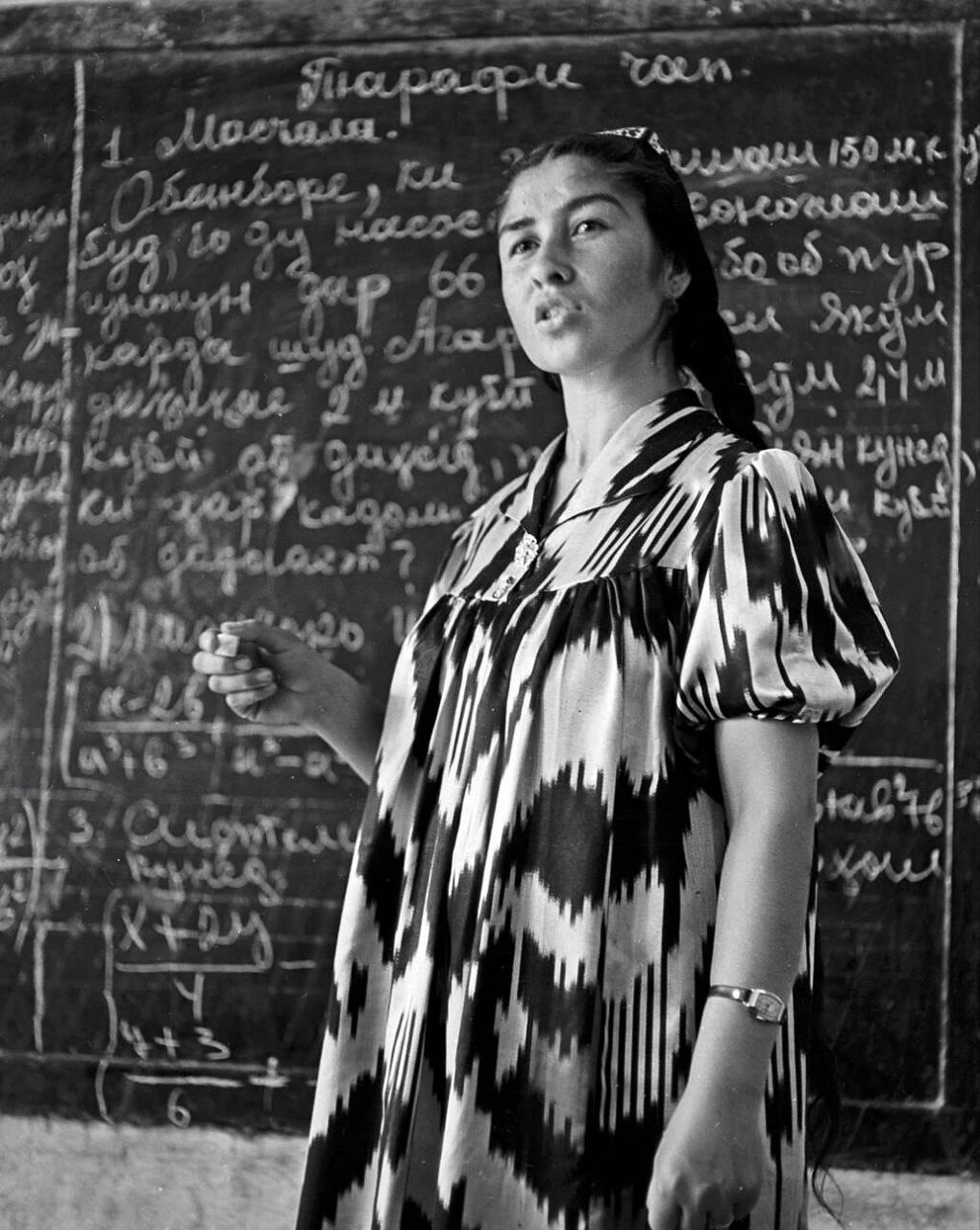 Урок математики в школе колхоза «Москва», Таджикистан, 1964