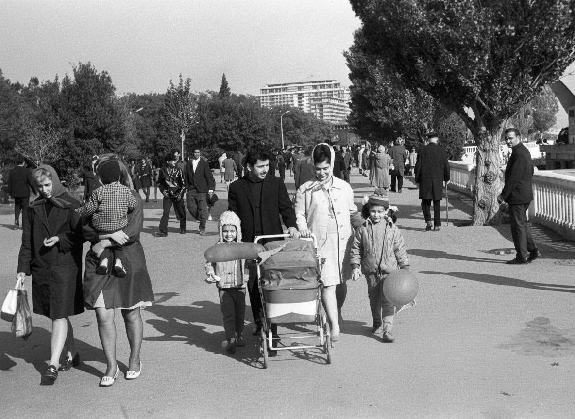 Бакинцы гуляют на Приморском бульваре, 1971