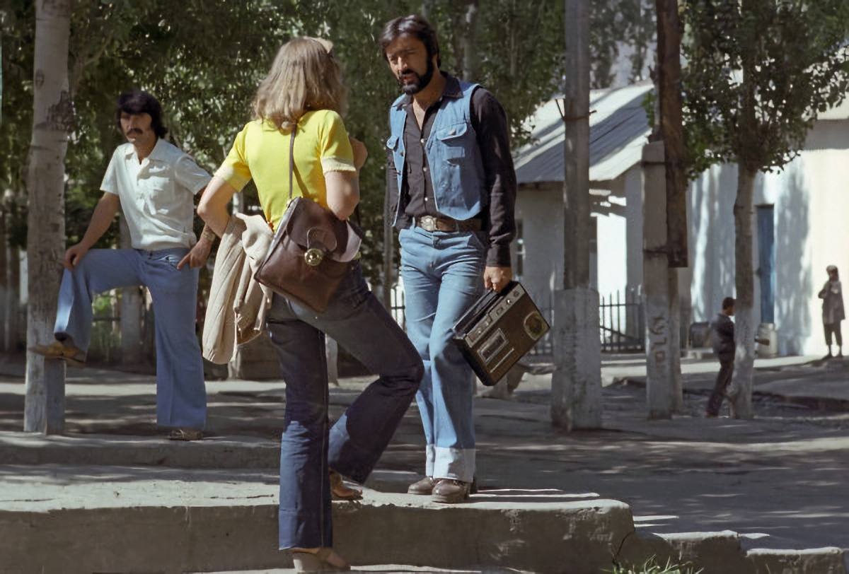 Местные жители на улице города Хорог в Таджикистане, 1982