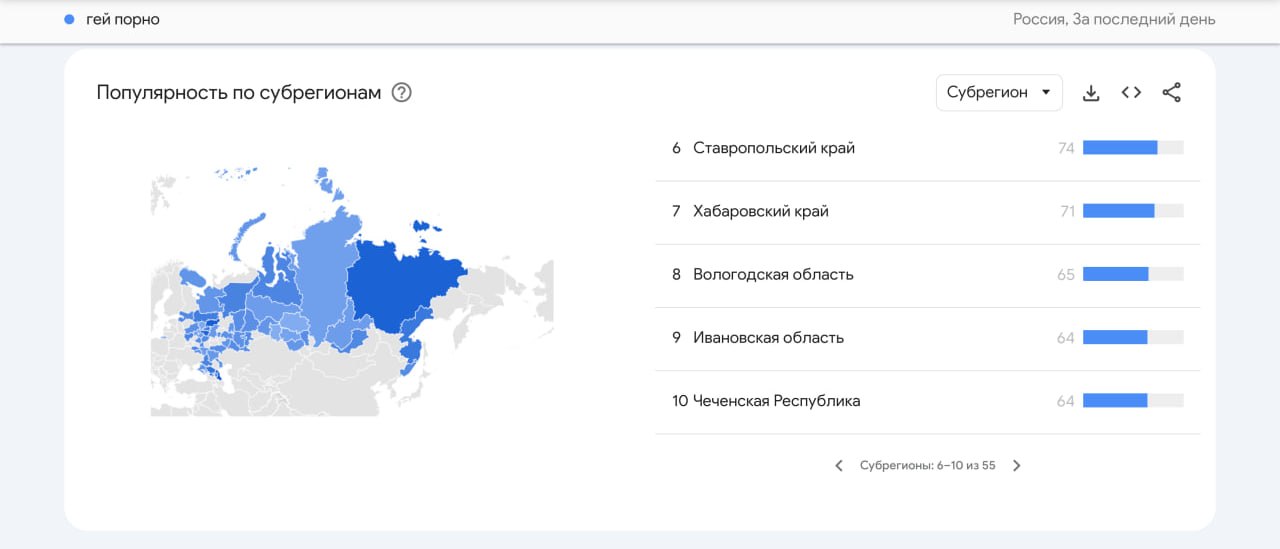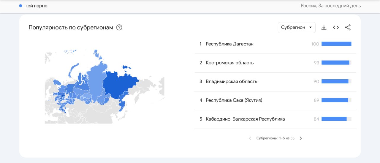 🏳🌈 Дагестан стал лидером по поиску гей-порно в России, сместив Чечню на десятое место