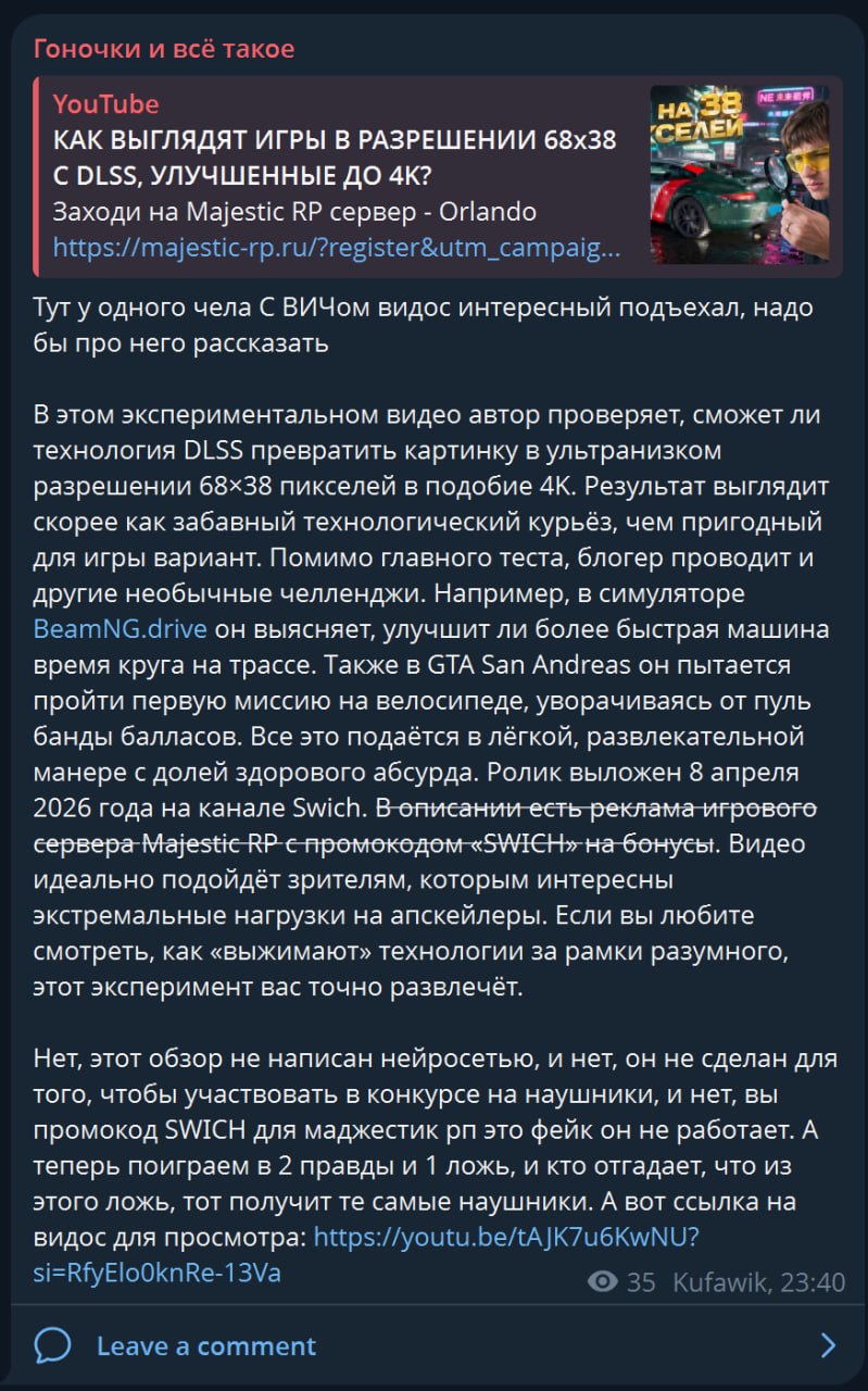 Спустя полгода я узнал очень важное дополнение для видоса про игровые рули.