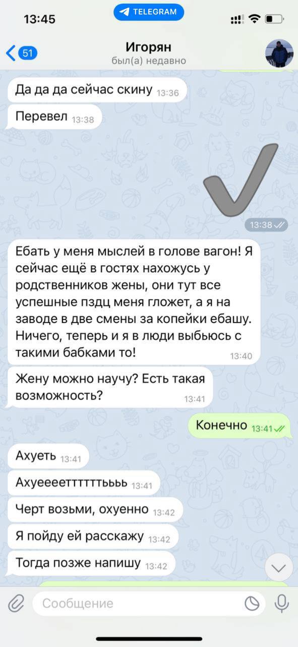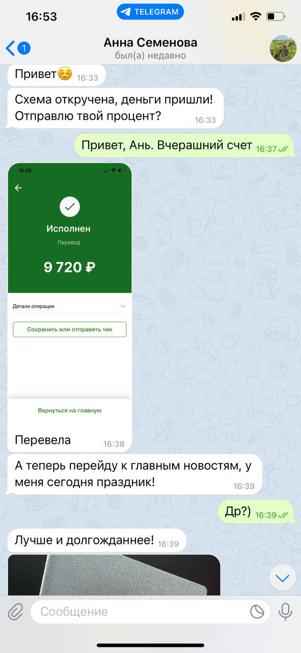 Ребята, самый кайф в том, что прокрутка схемы занимает у вас совсем мало времени. Остальное время можно заниматься своим любимым делом, хобби, или просто отдыхать! Залетайте в команду и занимайтесь своими любимыми делами без страхов и рисков! Главное не забывайте переводить мне процент после выигрыша 👏