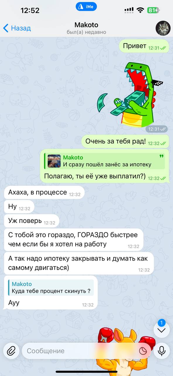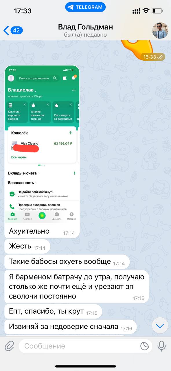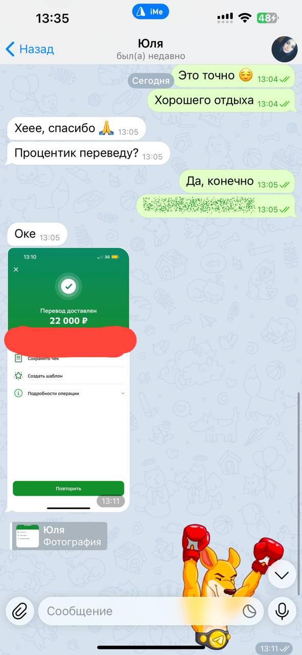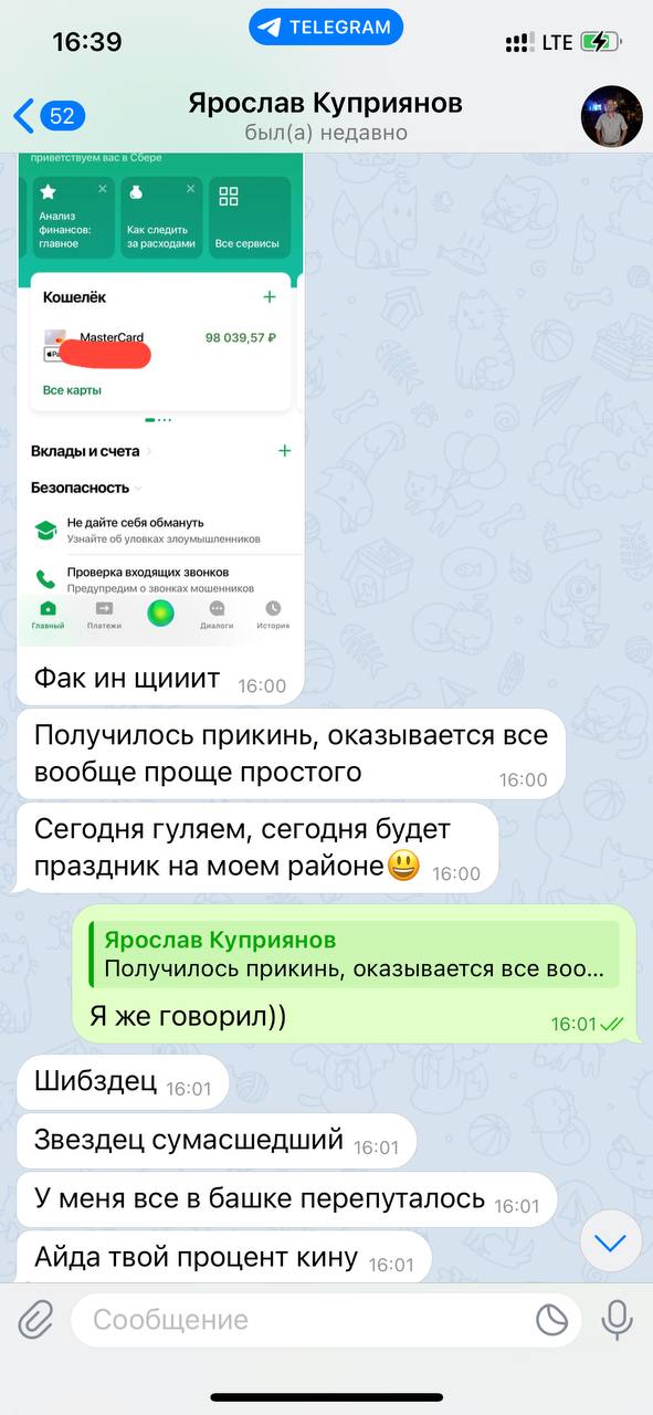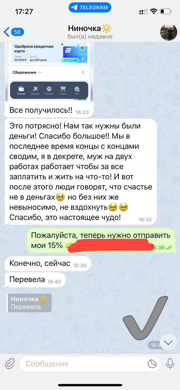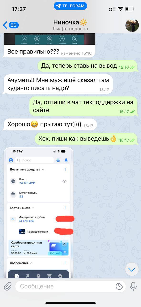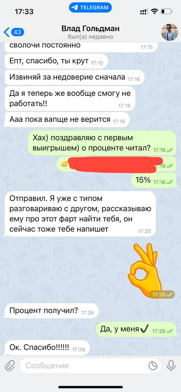 4. Пишем мне и уточняем, куда скинуть мне мой процент. ВАЖНО! Каждый выведенный куш = перевод мне 20%👌