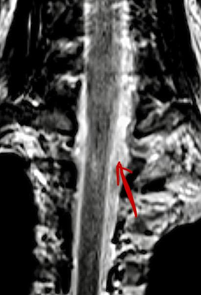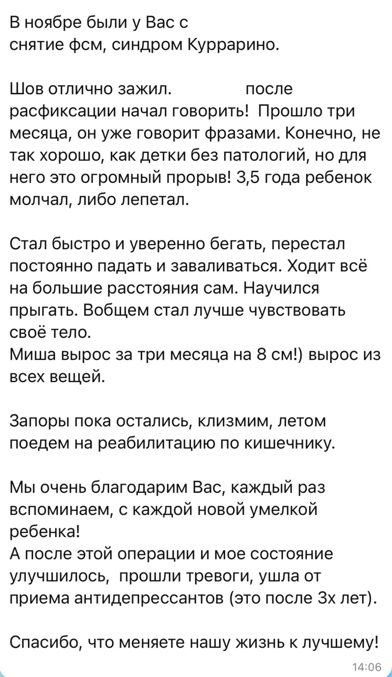 •мама ребенка описывает изменения через 6 мес после операции, при контрольной МРТ регресс признаков фиксации и натяжения спинного мозга.