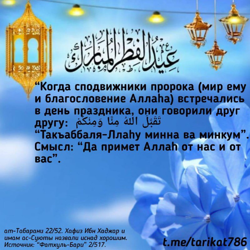 *Кто не знает указанной выше молитвы, может совершить обычный двухракаатный суннат-намаз, имея ният совершить ‘Ид-намаз.*