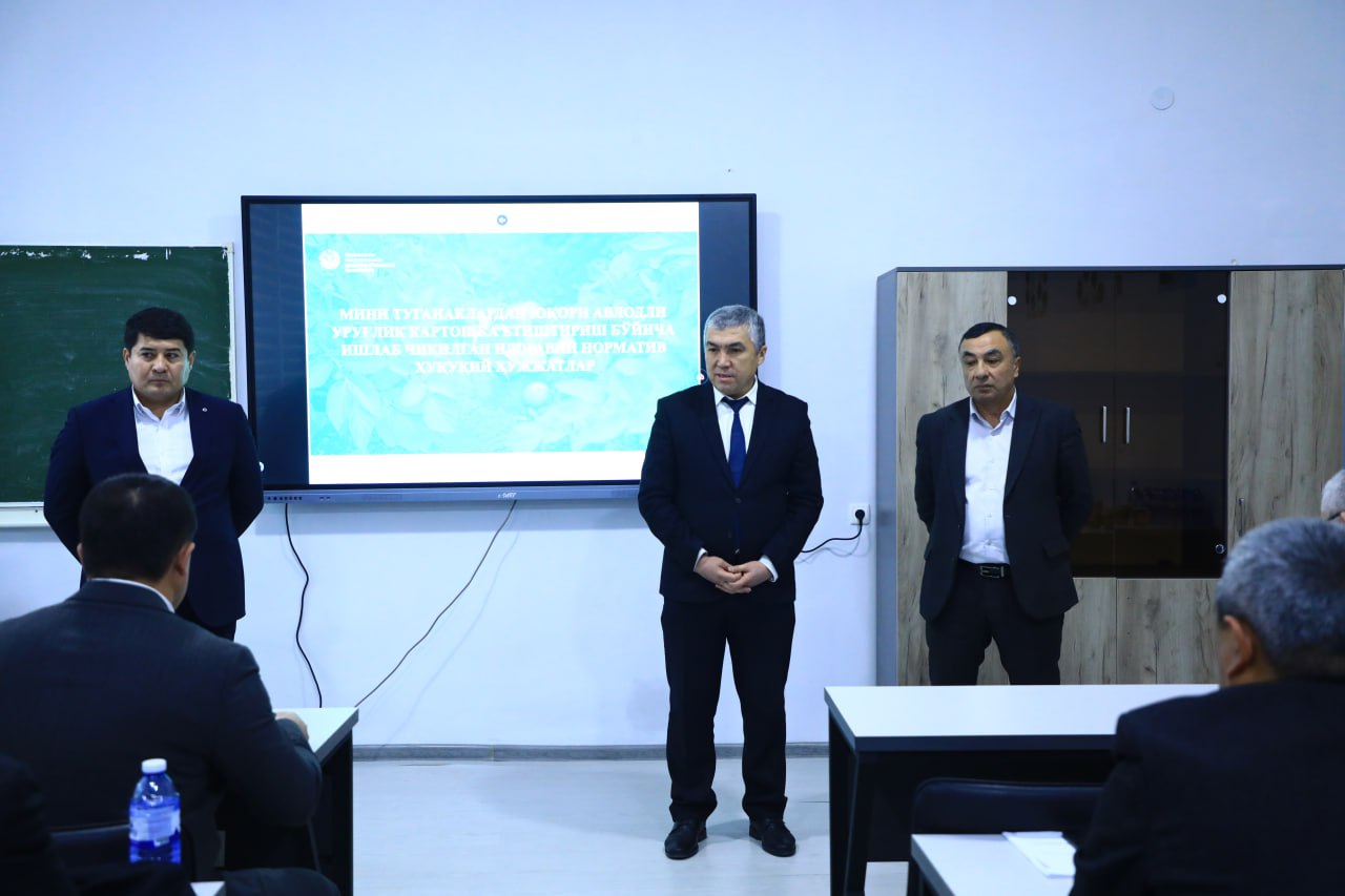 🔗 Seminarni Qishloq xo‘jaligi vazirligi boshqarmasi boshlig‘i Zafar Artikov ochib, Prezidentning 2025-yil 8-sentabrdagi PQ–269-son qarori bilan kartoshkachilikda, ayniqsa yuqori avlodli urug‘lik yetishtirish yo‘nalishida belgilangan ustuvor vazifalar, ishlab chiqaruvchilar uchun yaratilayotgan yangi imkoniyat va sharoitlarga alohida to‘xtaldi.