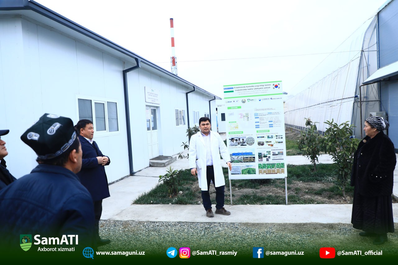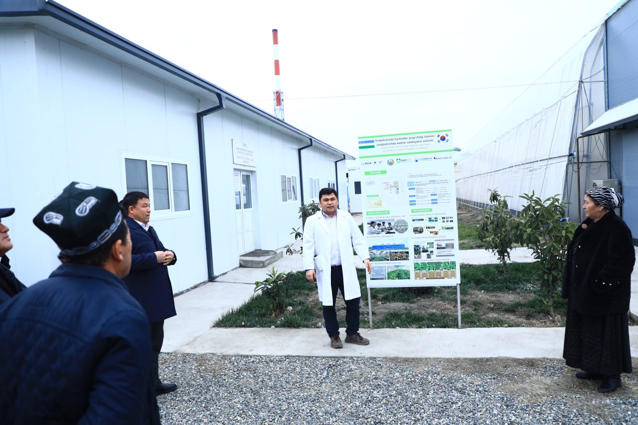 ✅ Tadbir yakunida ishtirokchilar O‘zbekiston–Koreya kartoshka urug‘chilik markazi faoliyati bilan tanishdi. Ekskursiya davomida in-vitro laboratoriya, viruslarni aniqlash laboratoriyasi, gidroponik issiqxonalar, himoyalangan parniklar, zamonaviy sug‘orish tizimlari hamda urug‘lik tuganaklarni saqlash uchun mo‘ljallangan sovutgich omborlari namoyish etildi.