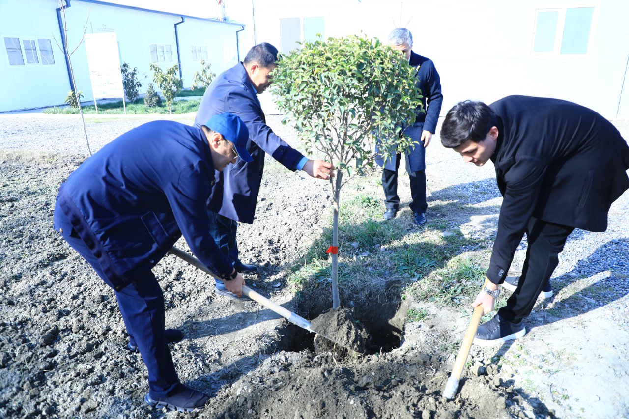 ☘️Tashrif yakunida “Yashil makon” umummilliy dasturi doirasida institut hududiga daraxt ko’chatlari ekildi.