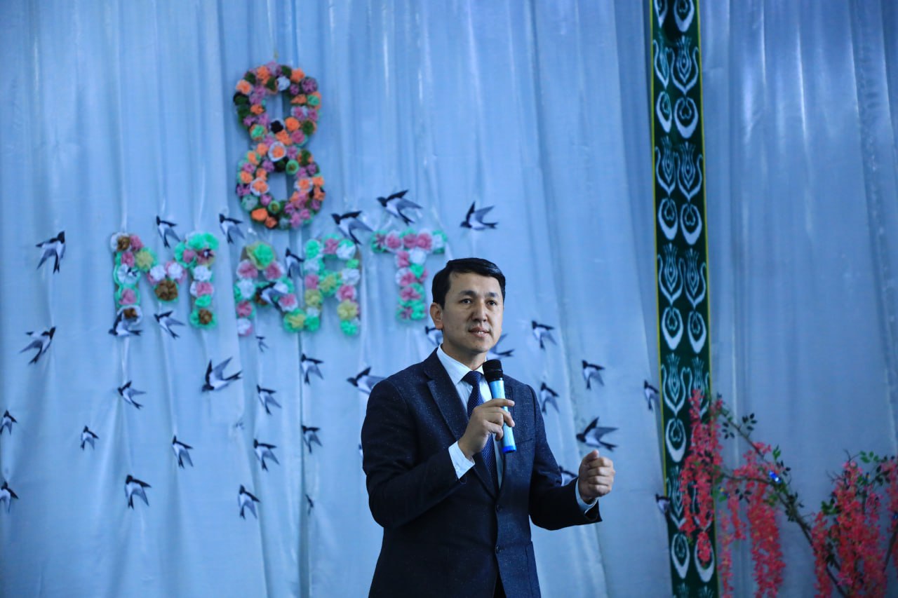 🗣 Tadbirni ochib berish uchun so‘zga chiqqan institut Birinchi prorektori U. Nurullayev kirib kelayotgan bayram bilan barcha talaba-qizlar hamda ayol professor-o‘qituvchilarni samimiy tabriklab, ularning ta’lim, ilm-fan va jamiyat rivojidagi o‘rni beqiyos ekanini ta’kidladi hamda kelgusidagi faoliyatlariga muvaffaqiyatlar tiladi.