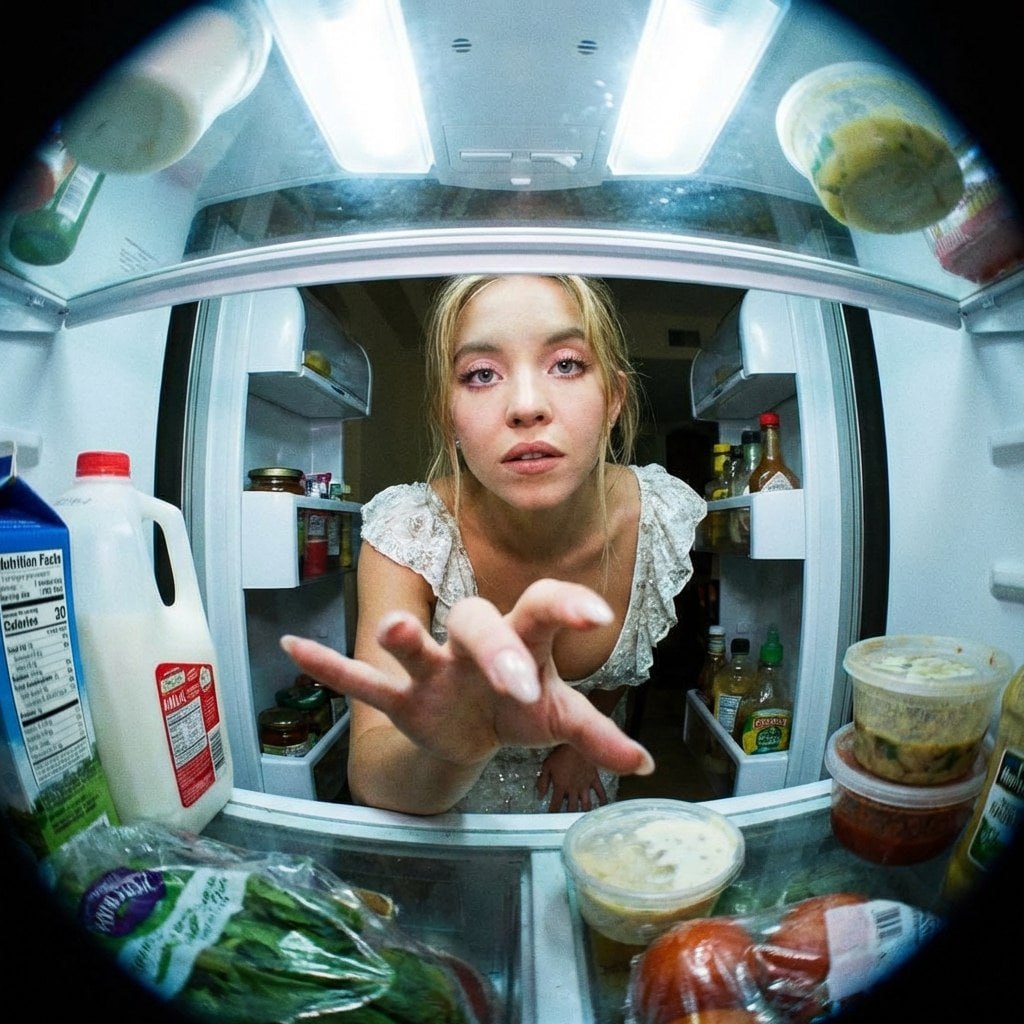 ИИ устроит вам НОЧНОЙ ДОЖОР — найден промпт для стильной фотки изнутри холодильника.