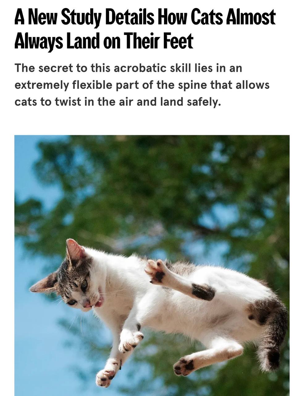 Главный фактор — особая структура позвоночника: верхняя часть у кошек очень гибкая, а нижняя — более жёсткая.