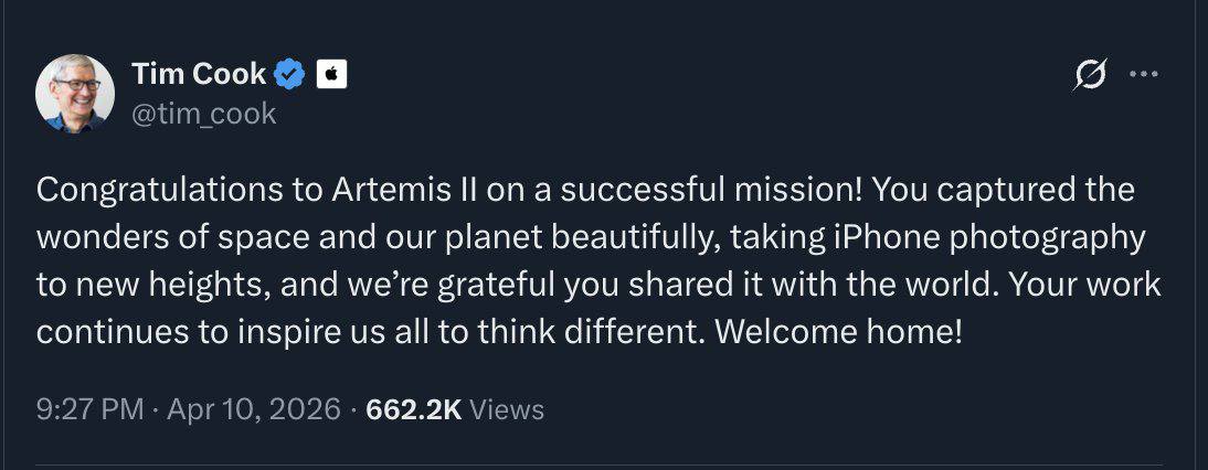Конспирология: в сети заметили, что Apple не комментировала полёт Artemis 2, пока космонавты успешно не вернулись на Землю.
