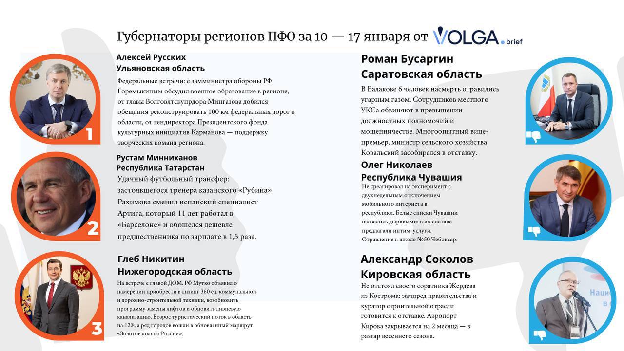 VOLGA.brief о том, что на первой рабочей неделе года губернатор Ульяновской области Русских был активен в повестке: