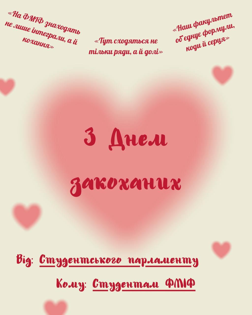 Бажаємо більше любові, щирих слів і теплих моментів. Нехай поруч будуть люди, які підтримують, надихають і роблять ваше студентське життя яскравішим ❤️