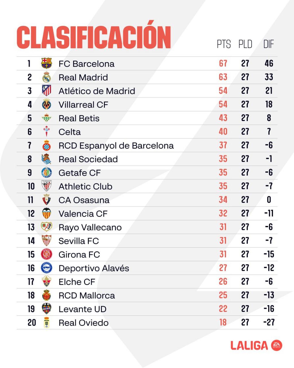 🤟 Результаты и турнирная таблица Ла Лиги после 27-го тура