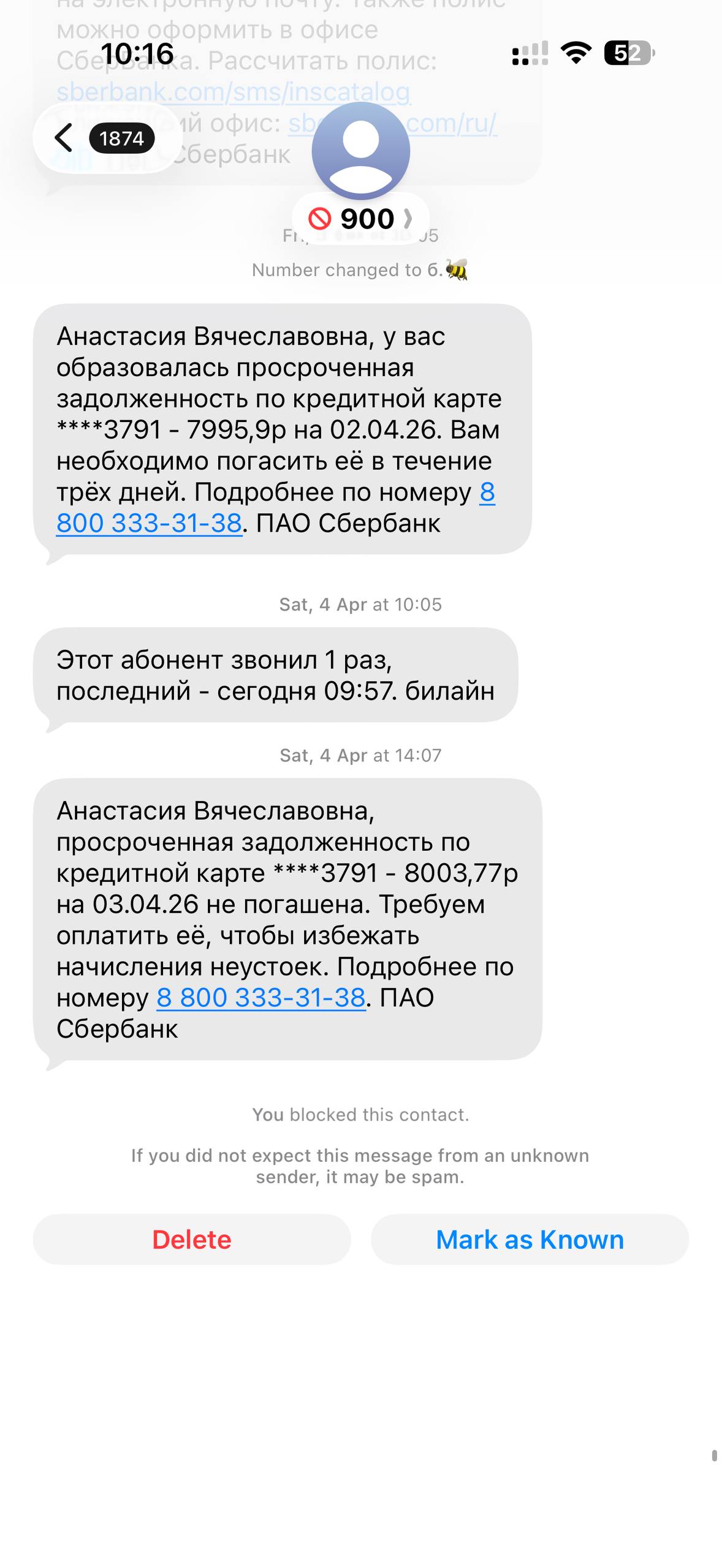 Уже вторую неделю я с утра до ночи получаю звонки от Сбера на мой номер, который никогда не был привязан к банку — с меня трясут просроченный кредит на имя Анастасии, хотя я даже человека с такими ФИО не знаю.