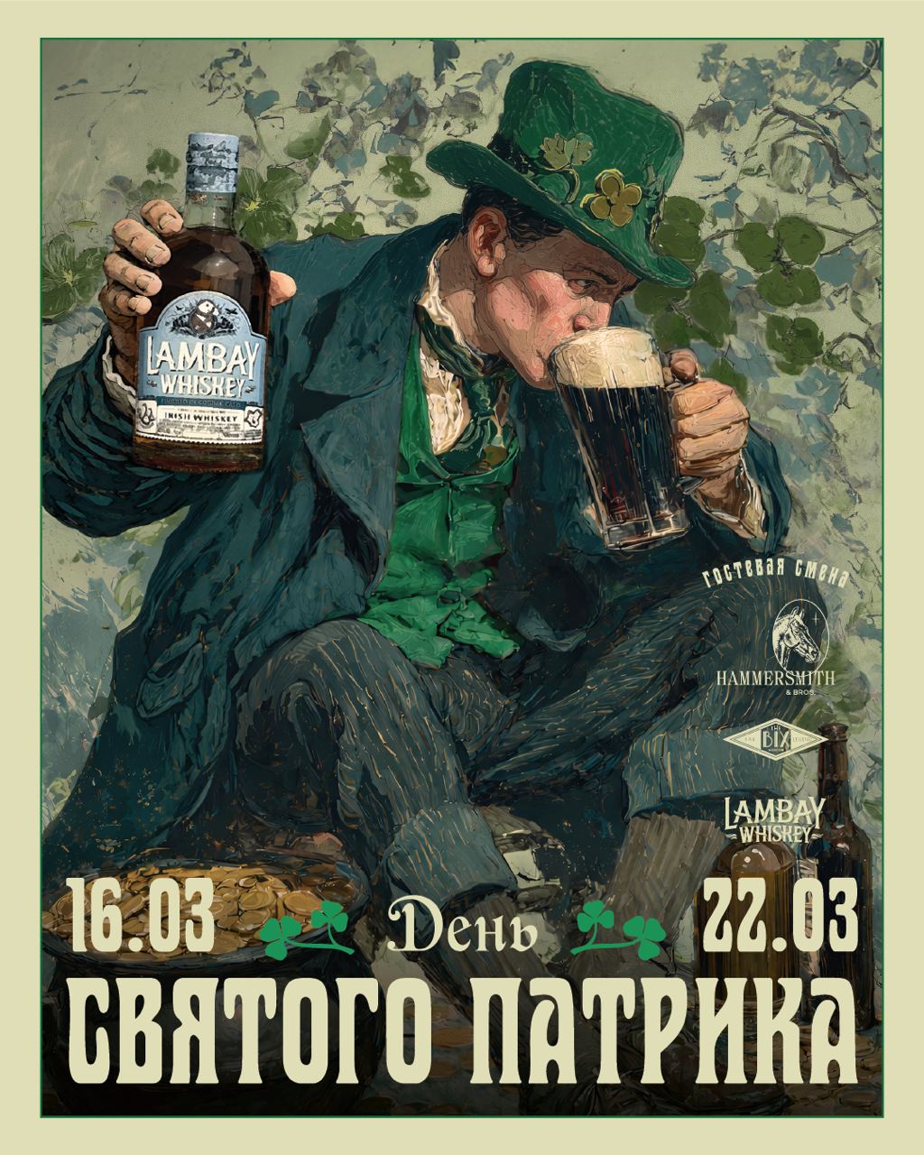 Всю неделю с 𝟭𝟲 по 𝟮𝟮 марта отмечаем День святого Патрика с коктейлями на виски Lambay