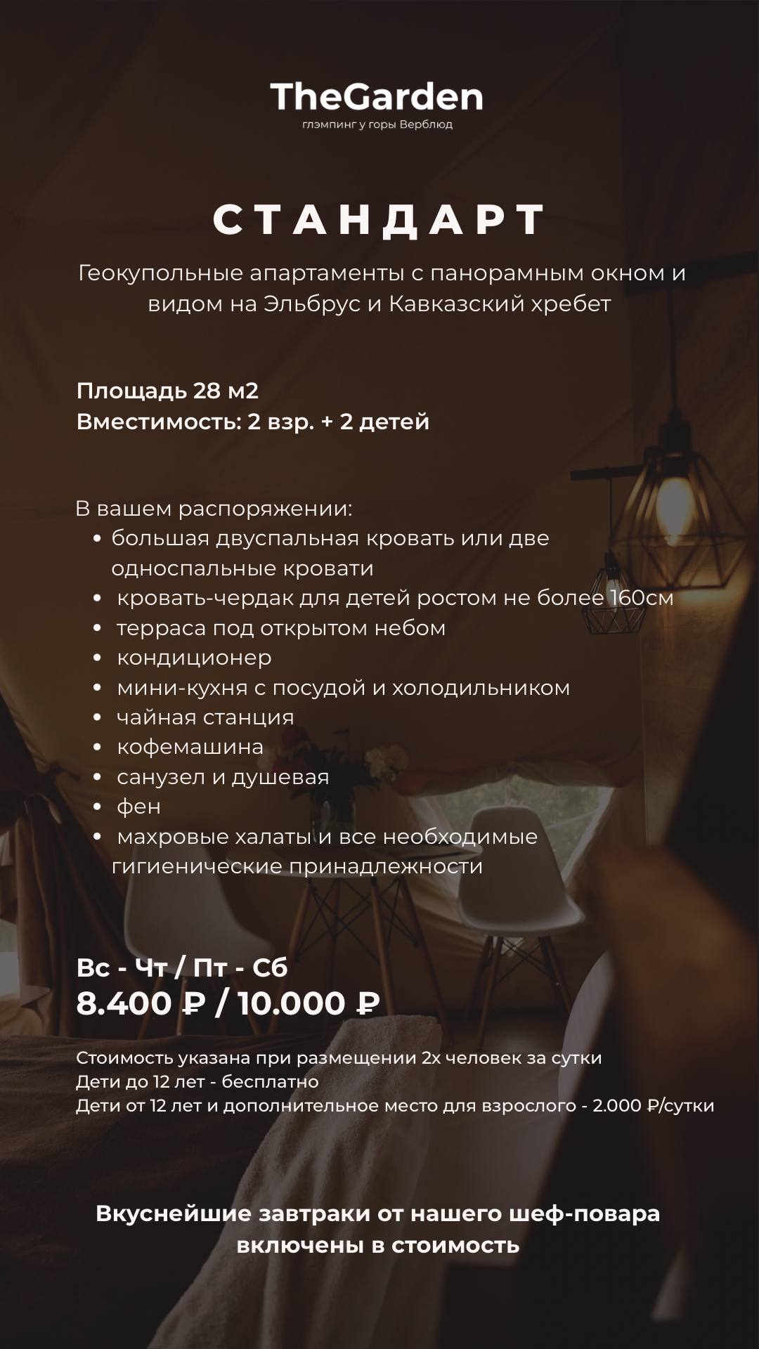 🔹Купол категории «Стандарт» – стоимость за 2-х человек 8 400/ 10 000 Р
