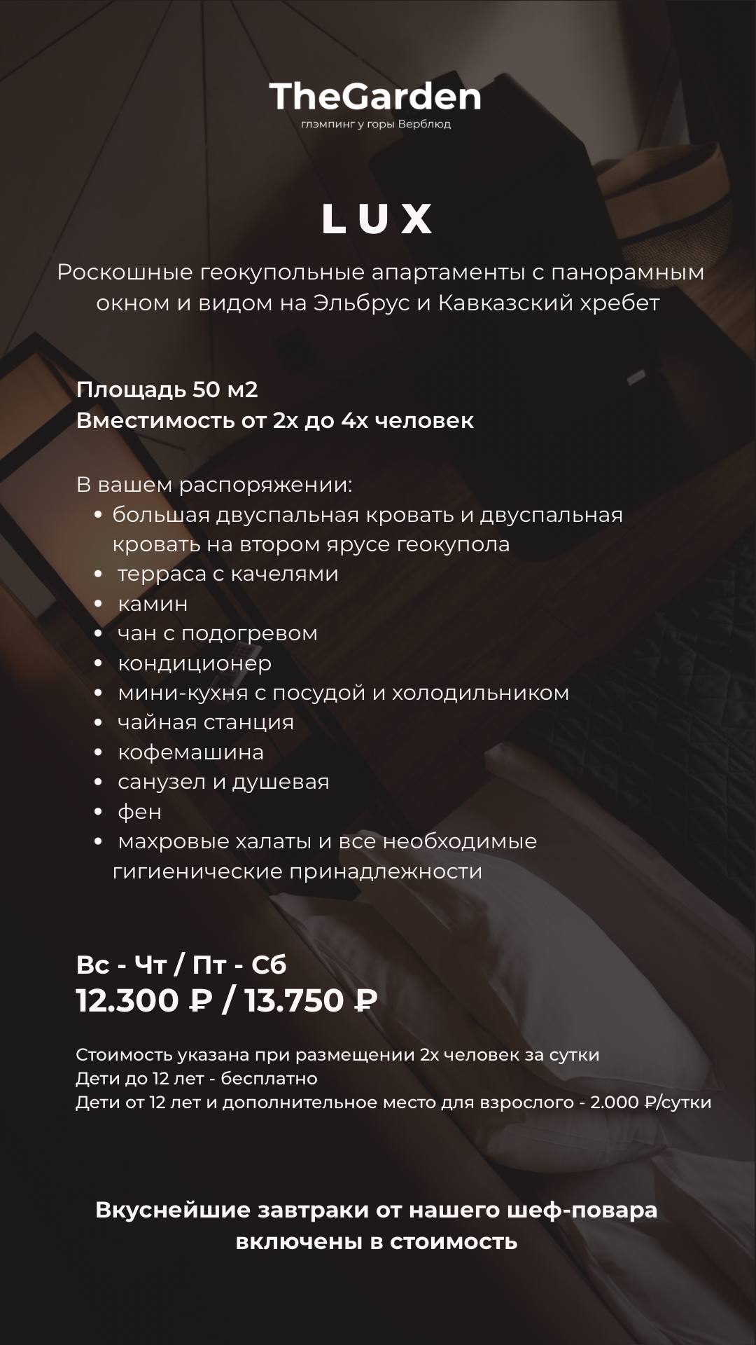 🔹 Купол категории «Lux» – стоимость за 2-х человек 12 300/ 13 750 Р