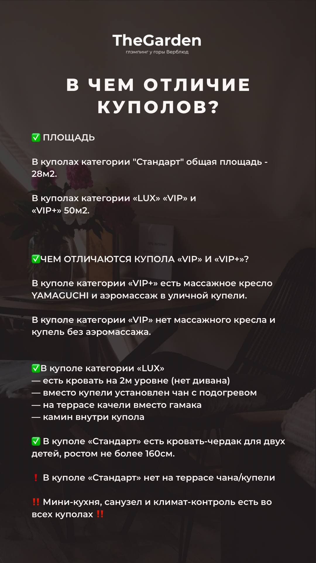 🔹 Купол категории «VIP» – стоимость за 2-х человек 11 100/ 13 100 Р