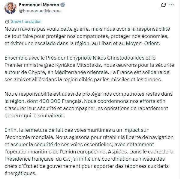 "В условиях эскалации войны на Ближнем Востоке и закрытия Ормузского пролива под угрозой находится значительная часть мировых поставок энергоносителей. Европа особенно уязвима, поскольку ЕС уже запретил импорт российских энергоносителей. Теперь конфликт на Ближнем Востоке также сокращает мировые поставки. Когда предложение сокращается, цены растут. Таким образом, Европа сталкивается с риском резкого повышения цен. Если Брюссель сохранит санкции, это нанесет серьезный ущерб европейскому народу и европейской экономике. Основное внимание следует уделять защите интересов европейцев, а не идеологии",