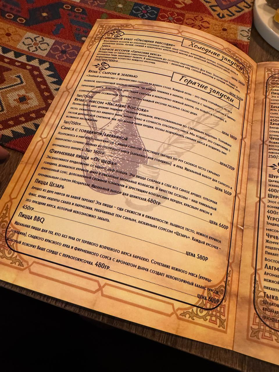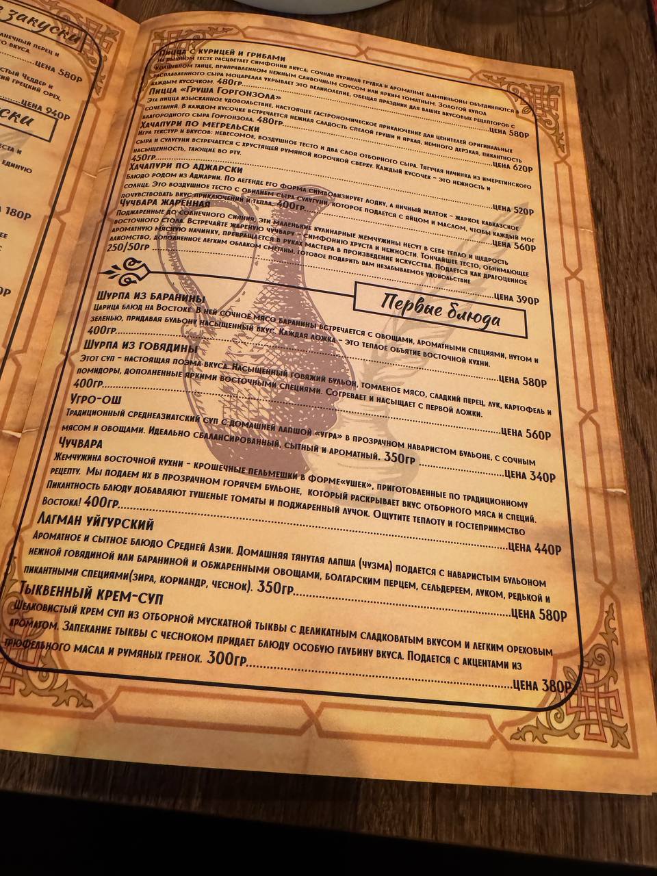 Фишка ресторана восточная кухня в авторском изложении и разнообразный ассортимент плова! Вас примут с истинно восточным гостеприимством под аккомпанемент традиционной музыки. Здесь очень уютно и атмосферно, ничто не напоминает чайхану с липкими столами и засохшими остатками риса на полу - это заведение нового типа, отвечающее всем требованиям современного ресторана, включая оплату терминалом.