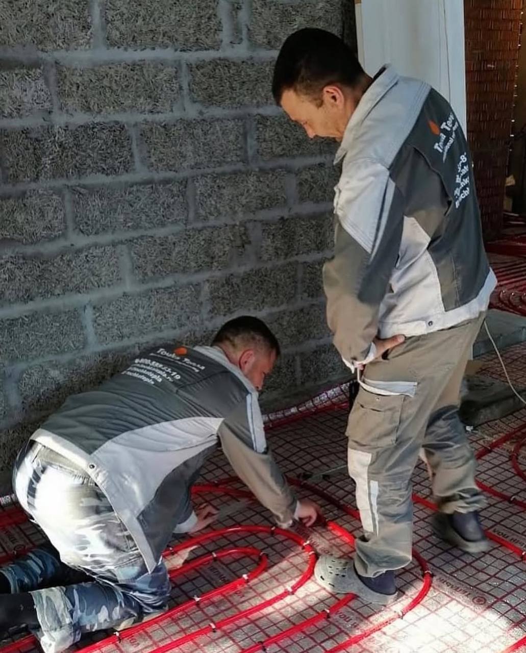 📸На фото:процесс монтажа водяных тёплых полов.