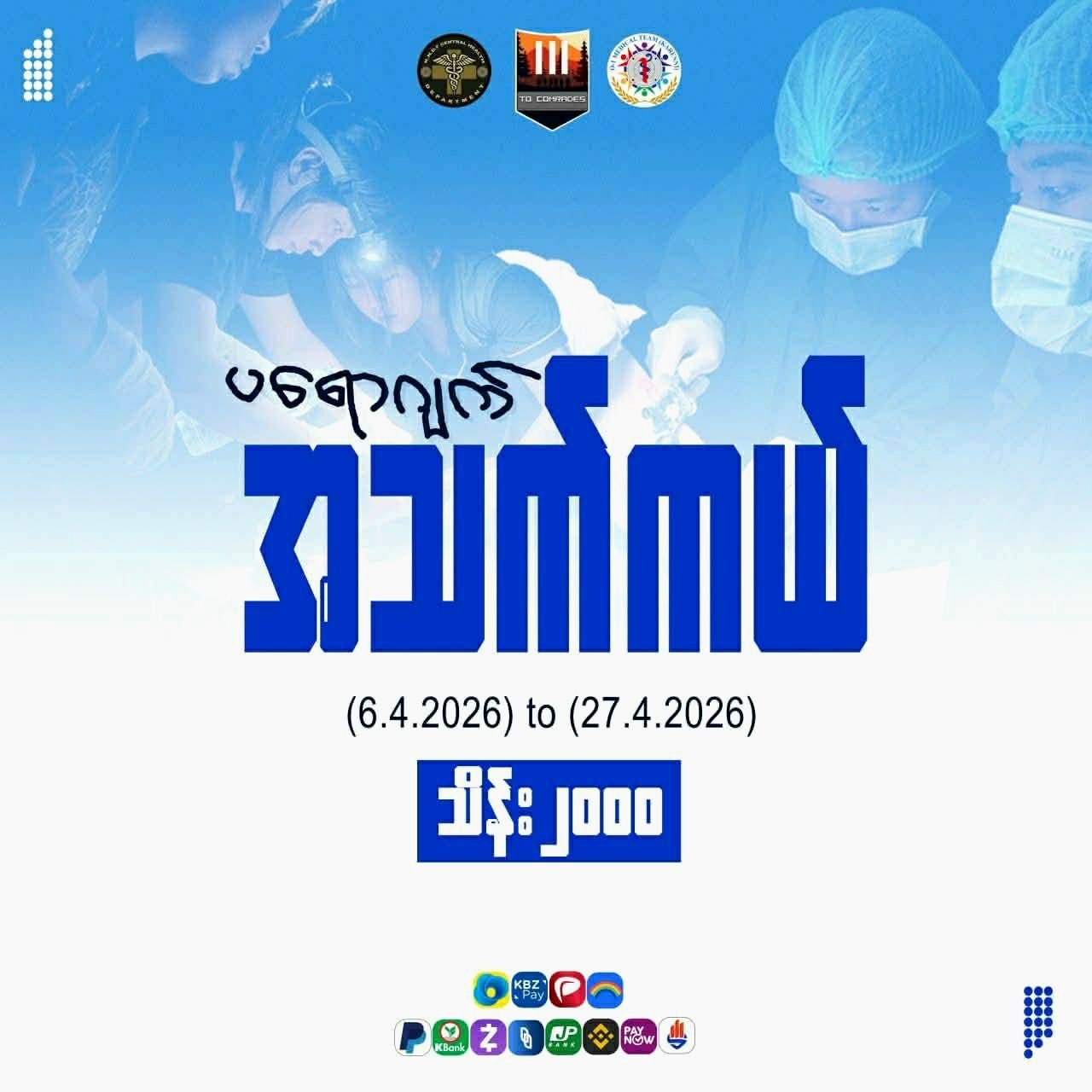 ရဲဘော်များနဲ့ စစ်ဘေးရှောင်ပြည်သူများကို ဆေးကုသမှုပေးနိုင်ဖို့ စက်သုံးဆီကမ်ပိန်းလေး ပြုလုပ်နေပါတယ်ဗျ။ အားဖြည့်ပေးကြပါဦးနော်🥰