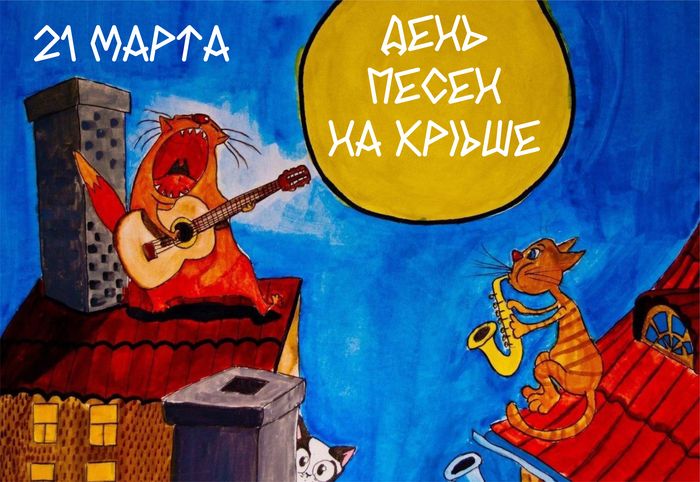 День песен на крыше отмечают в марте. Наверняка это связано с тем, что вместе с природой весной просыпаются все чувства, нас переполняют эмоции, возникают в голове необычные фантазии, и тянет забраться на крышу поближе к весеннему солнышку. Не каждый, конечно, на такое решится. А тем более ещё и петь там. Но представляете, как это может быть романтично: голубое небо, белые облака, ласковый будоражащий весенний ветерок. Или наоборот: звёздно-лунная ночь, тишина и пение под гитару. Если конечно коты не помешают. Не случайно их так и называют - мартовские!