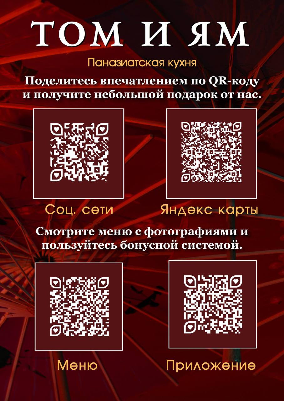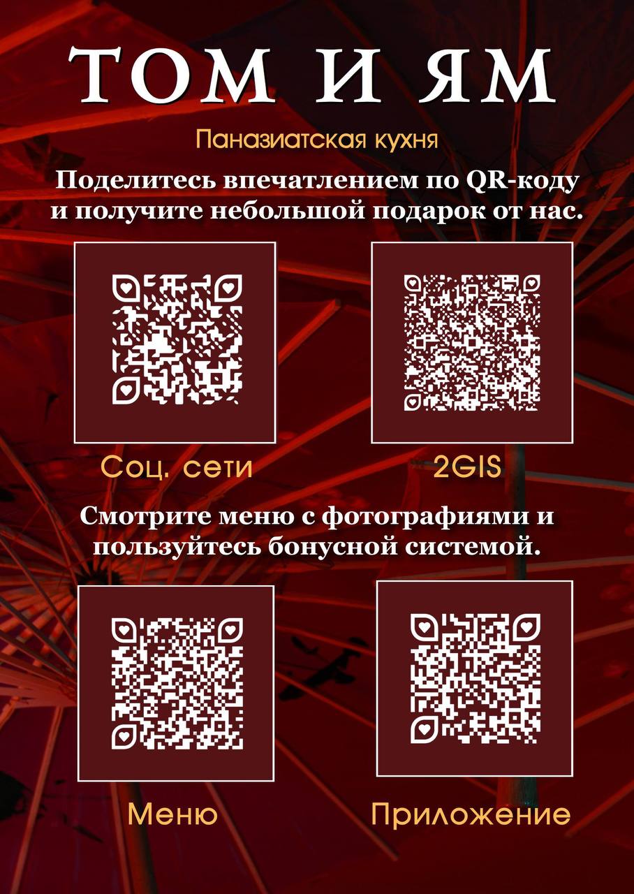 Теперь поделится впечатлениями, скачать приложение для доставки и программы лояльности, посмотреть меню - все это можно сделать, не отходя от вашего столика !