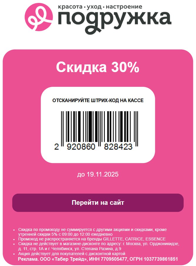 🎟 ХОЧУ - доп. скидка 10% от 5000₽, 20% от 10000₽ и 30% от 15000₽ для всех до 19.11.2025 23:59