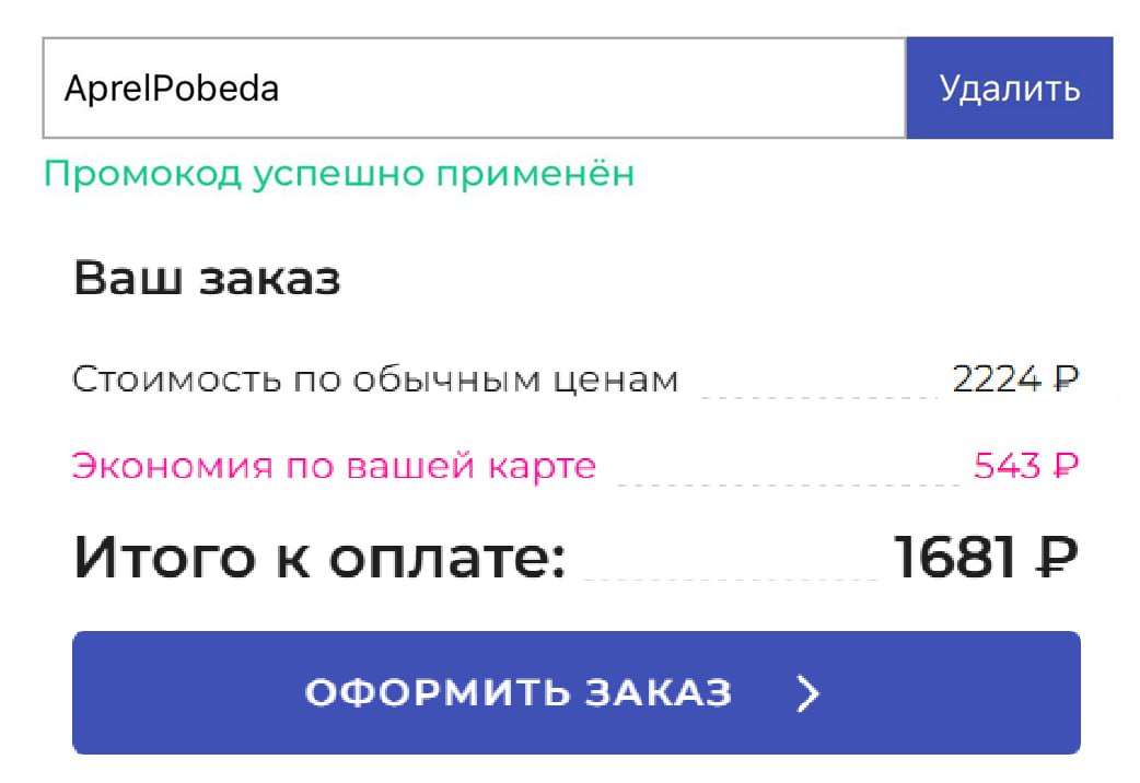 ● 3557PCVB7 — скидка 355₽ на один заказ от 1555₽ (не покупали более 180 дней)