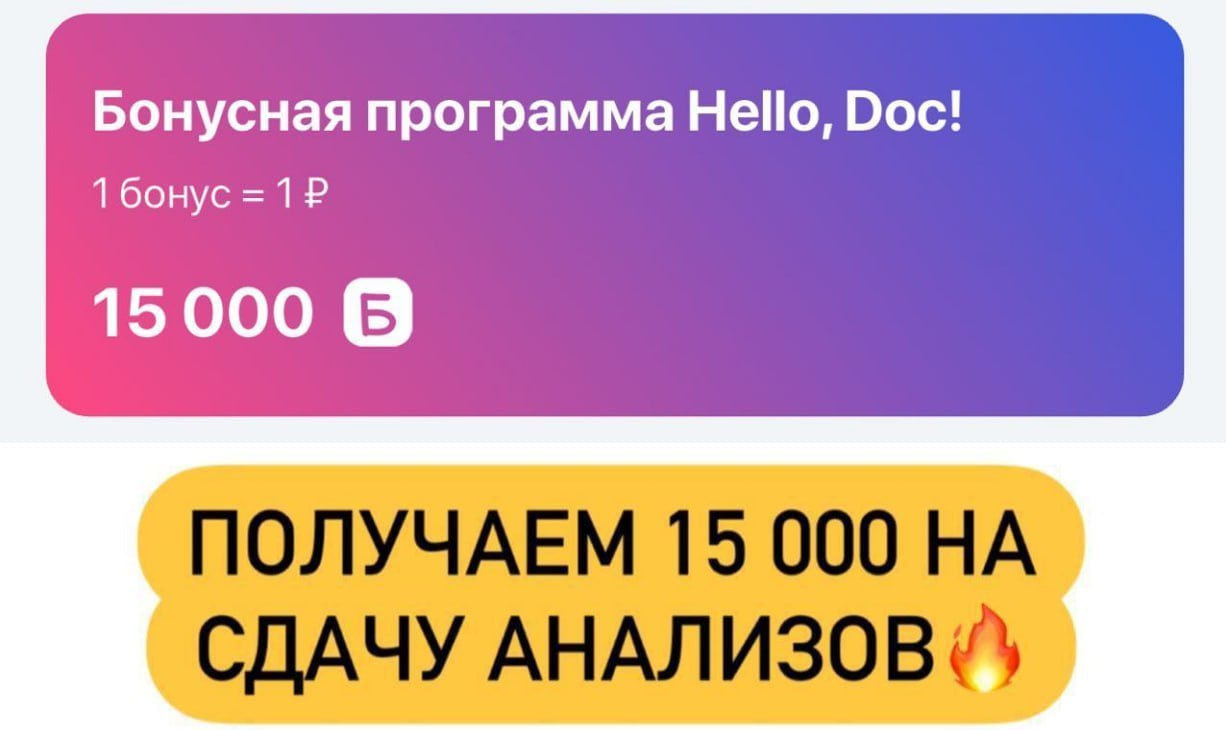 15 000 бонусов на анализы в Hellodoc🔥