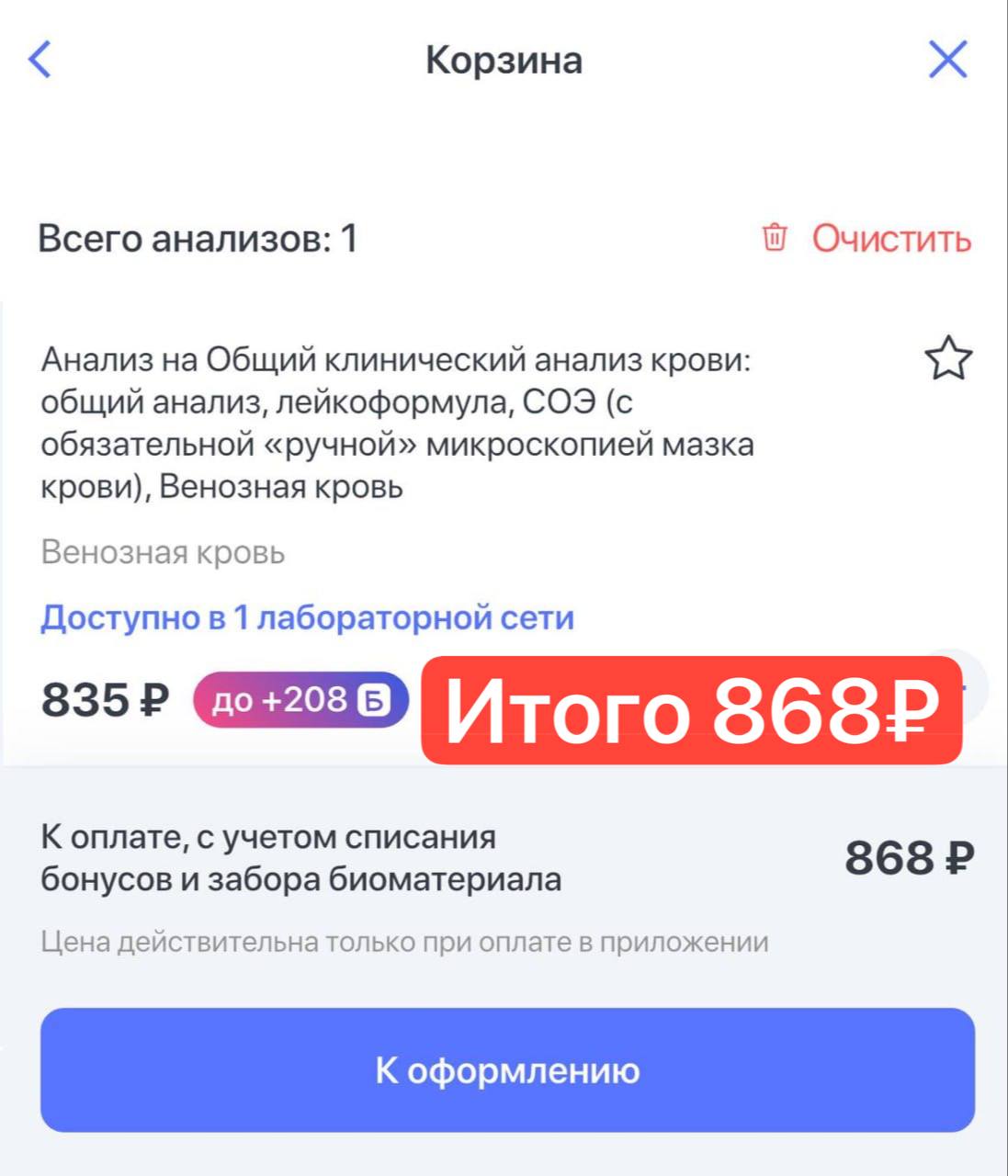 Даже просто сравнивая, на картинках цена общ. анализа крови в HelloDoc и напрямую в Инвитро. Выгоднее оказалось в Хэлодок. 868₽ с баллами против 1 035₽ напрямую.