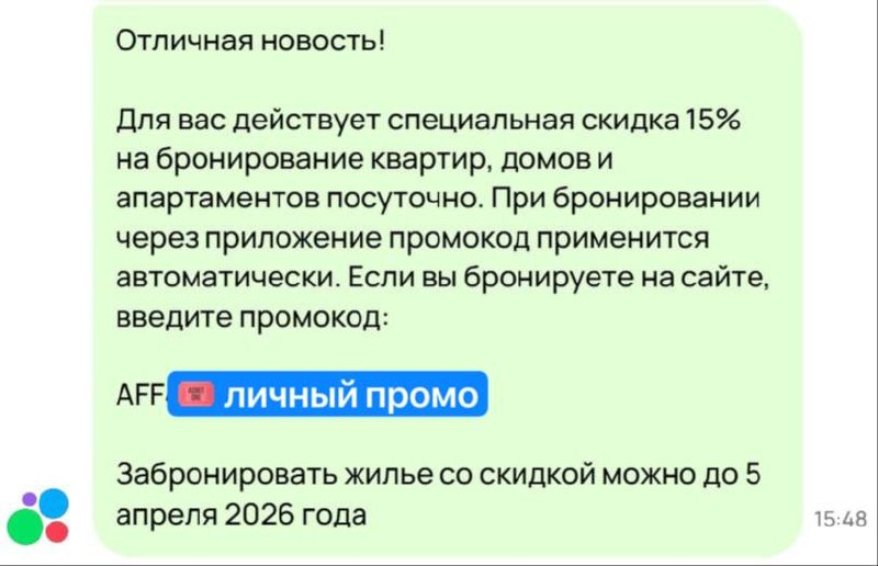 👍 Запускают промокоды со скидками для ваших выгодных бронирований