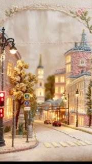 Используйте загруженное изображение как референс и создайте ручную арт-работу из ниток и шерсти. Макро-фотография, мягкий рассеянный свет, пастельная палитра, высоко детализированные волокна и стежки, уютная, сказочная атмосфера и немного уменьшенная масштабность, как в диораме