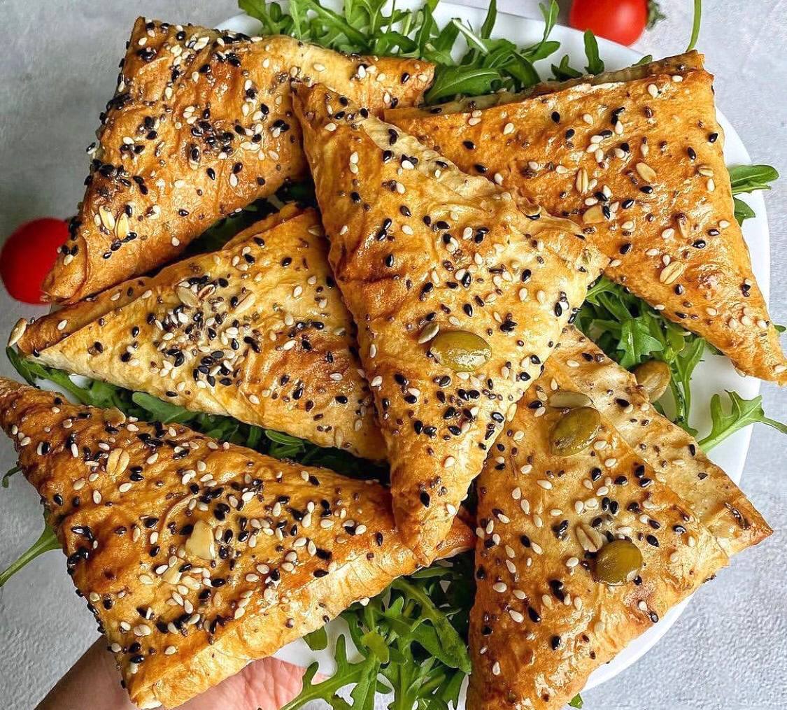 4. Ломтики хлеба разрежьте на половинки, чтобы получились треугольники. Слегка подрумяньте на сковороде или в тостере, остудите.