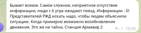 Между тем, люди страдают еще и отсутствия информации - тем, кто ждет на вокзалах, никто ничего не обьясняет.
