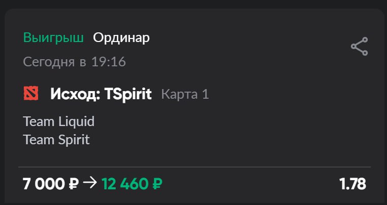 Мне нравится ставка «Исход матча: Liquid» (означает победу в серии Ликвид).