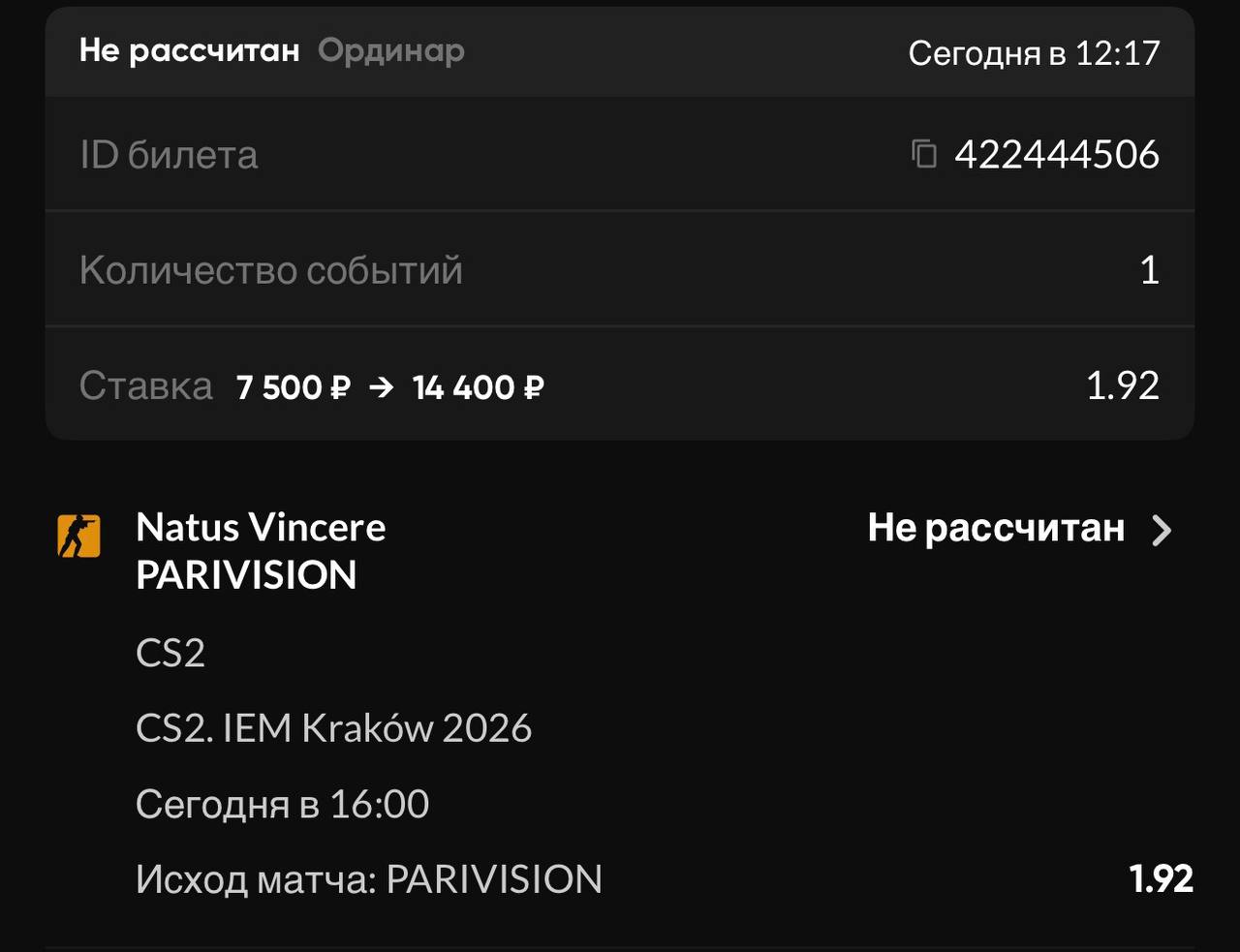 Мне нравится ставка «Исход матча: TSpirit» (означает победу в серии Спирит).