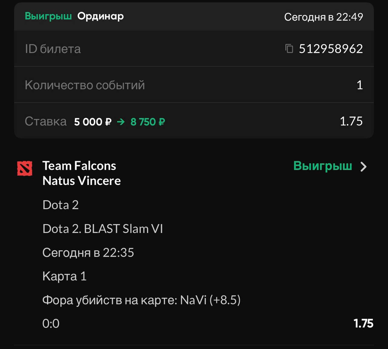 Это значит, что моя ставка заходит всегда, когда Нави делают больше килов, чем (килы Фалькон - 8). То есть они могут даже проиграть, если это луз близкий по фрагам - я выиграю