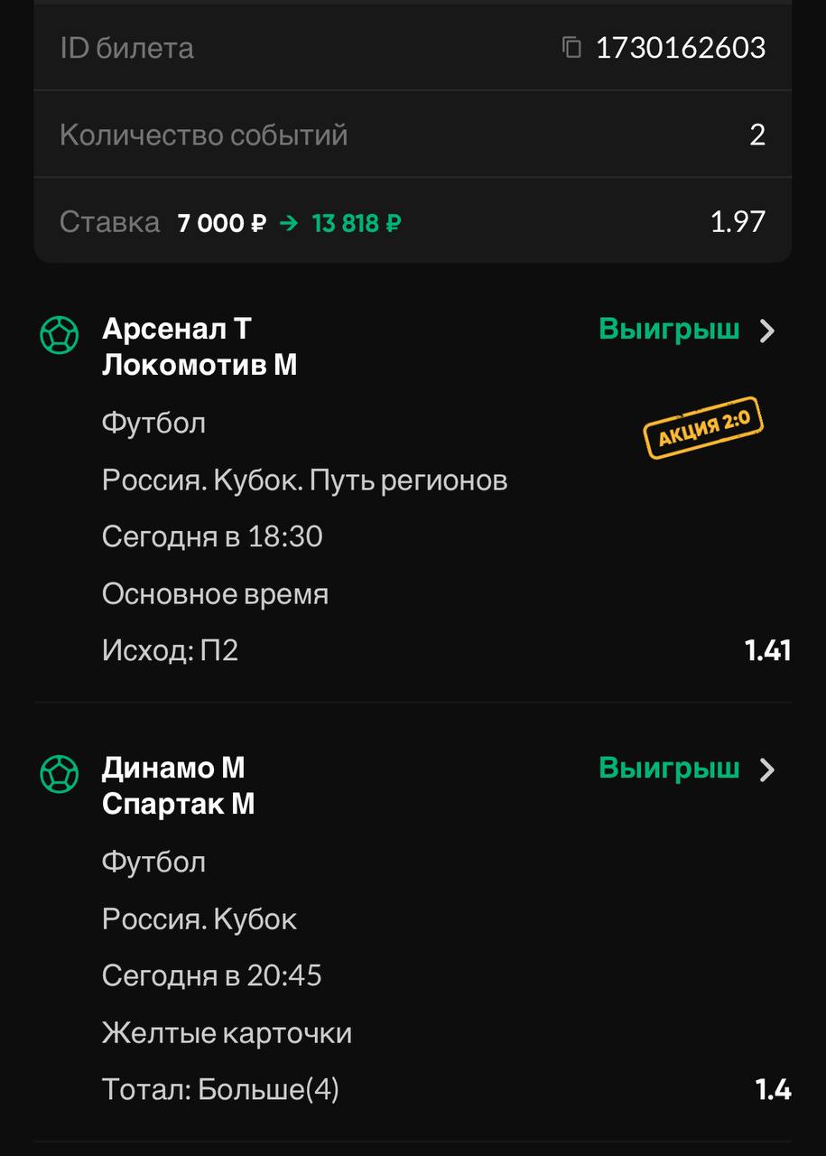Еще один экспресс, теперь на Кубок России🇷🇺