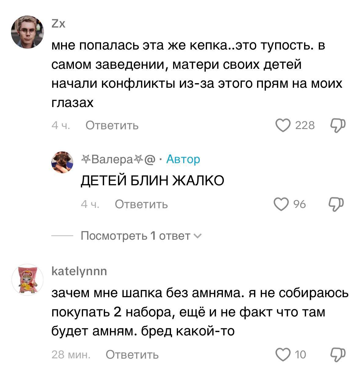 При этом стоимость наборов не отличается — они продаются вслепую, так что за одну и ту же цену кто-то получает Ам Няма, а кто-то просто кепку. Чаще всего, судя по роликам, попадаются именно головные уборы.