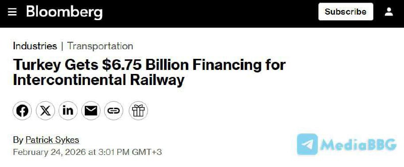 🇹🇷 ТУРЦИЯ ПОЛУЧИЛА ФИНАНСИРОВАНИЕ В РАЗМЕРЕ $6,75 МЛРД НА СТРОИТЕЛЬСТВО МЕЖКОНТИНЕНТАЛЬНОЙ ЖЕЛЕЗНОЙ ДОРОГИ